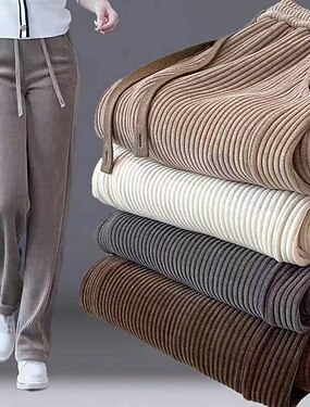 Dam Mager Fleecebyxor Manchesterbyxor Streetwear Enkel Ledigt Fullängd Medium Midja Slät Ficka Elastisk midja Håller värmen Komfort Mjuk Microelastisk Semester Alla hjärtans dag Gata Svart Rosa Brun