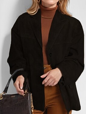 Dam Kavaj Håller värmen Andningsfunktion Ficka Kontorsdam Stil Ledigt Slät Formell Kontor Arbete Öppen front Normal Nedvikt Normal Långärmad Ytterkläder Svart Fuchsia Sommar Vår