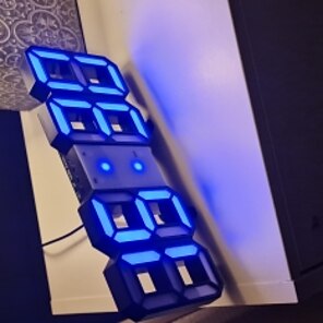 Positivt överraskad. Lamporna är väldigt starka och kroppen "dränker" nästan helt jämfört med de ljusa siffrorna. Klockan 19:00 växlar belysningen till att dämpas, så att på kvällen, när ljusnivåerna är lägre, bländas inte siffrorna och det är också en välkommen överraskning. Än så länge fungerar i alla fall allt riktigt bra och kvalitén är bättre än jag vågat förvänta mig av det billiga priset: Kabeln har en USB-anslutning, det vill säga om det kommer till en plugg måste det vara en USB-kontakt, vilket används ofta i telefonladdare, alternativt ett "stort" knappcellsbatteri. Positiivisesti yllättynyt. Valot ovat hyvinkin kirkkaat ja runko melkeinkuin "hukkuu" kokonaan verrattuna kirkkaisiin numeroihin. 19:00 aikaan valot vaihtuvat himmeämmäksi, jotta illemmalla valotasojen ollessa pienemmät ei numerot häikäise ja sekin tervetullut yllätys. Toistaiseksi kaikki toimii ainakin todella hyvin ja laatukin parempi kun uskalsin halvalta hinnalta odottaa : Johdossa USB liitäntä, eli jos pistokkeeseen tulossa, pitää olla usb-pistoke puhelimen latureissa usein oleva käy tai vaihtoehtoisesti "iso" nappiparisto.