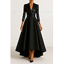 Smokingklänning Hög-låg klänning Formell Bröllop Bröllopsgäst Paljett Elegant 3/4-ärmad veckad Golvlång Naggade slag |