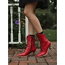 vintage ankelstövlar i rött läder för kvinnor – premium kohud med blommiga knappaccenter och tjock häl för retrostil och vardagsbruk |