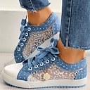 charmiga blå sneakers med snörning och blommig spetsdetalj - snygga damskor med prickiga accenter, perfekta för avslappnade utflykter |