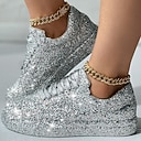 platåsneakers i silverglitter för kvinnor - glittrande vardagsskor med snörning för fester och streetstyle |