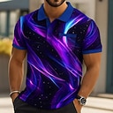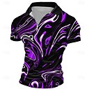 Herr Grafisk Pikétröjor med dragkedja Golftröja Kortärmad Polotröjor Skjortor med krage Semesterkläder Rave Wear Festkläder 3D-utskrift Quarter Zip Polo Sommar Vår Purpur |