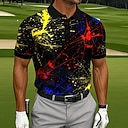 Herr Golf Stänkbläck Polo Sport pikétröjor Kortärmad Polotröjor Skjortor med krage Ledigt Fritids- 3D-utskrift Knappar Sommar Svart Vit |
