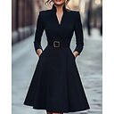 Dam Arbetsklänning Sheath Dress Semi formell klänning Mode Kontor Dagligen Arbetsmode Midiklänning Knapp Kavajslag Långärmad Slät Normal Svart Vin Fuchsia Höst Vinter S M L XL XXL |