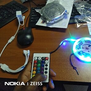 Fjärrkontrollen fungerar bra. vi använde den för under skåpbelysning. Jag satte kardborrband på fjärrkontrollen och fastade den inuti dörren till skåpet. Ljus och färgglad!