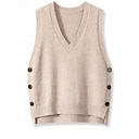 Dam Tröja Tröja väst Vintage Streetwear Ensfärgat V-hals Knappar Stickat Ärmlös Vanliga toppar Sticka Utomhus Dagligen Utekväll Svart Rubinrött Vår Höst |