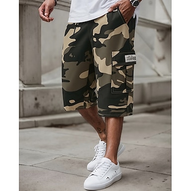 Herr Cargo-shorts Capribyxor Camo Shorts Sommarshorts Snörning Elastisk midja Flera fickor Kamuflasje Komfort Bärbar Vadlängd Utomhus Sport Dagligen Mode Ledigt Kaki Armégrön