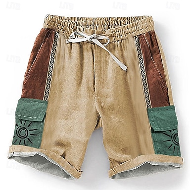 Herr Grafisk Geometriska mönster Shorts Sommarshorts Beach Shorts Medium Midja Designer Etnisk Stil Retro / vintage Ledigt Dagligen Helgdag Snörning Elastisk midja 3D-utskrift Designer Kläder