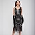Glada 20-talet 1920-talet Cocktail klänning Knälång Flapper-klänning Klänningar Balklänning Holkärm Den store Gatsby charleston Paljetter Lappverk Rundhals Maskeradkläder Dam Bröllop Fest Kvällsfest
