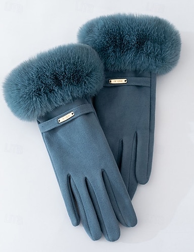 Damhandskar med pekskärm, polyester i fuskpäls, mysiga vinterhandskar till jul, eleganta och snygga som julklapp