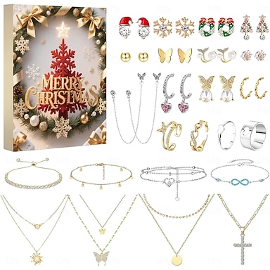 smyckesadventskalender 2025, julkalender 2025 kvinnor med örhängen, halsband, ringar och armband, silverguld, 25 dagars adventskalender smycken för kvinnor och tonåringar
