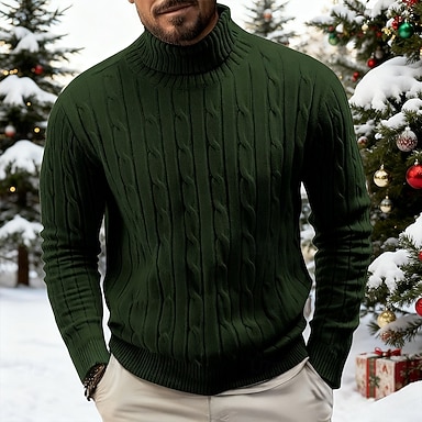 Herr Pullover tröja Stickad tröja Ribbad Kabel Sticka Vanliga toppar Stickat Slät Polokrage Mode Ledigt Semester Dagliga kläder Kläder Höst vinter Vin Grön M L XL
