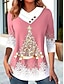 Jul kvinnor T-shirt grafisk Claus vintage stilren klassisk lång ärm crew neck v-hals vanliga toppar dagliga knappar tryck asymmetrisk svart röd blå grön vår höst vinter