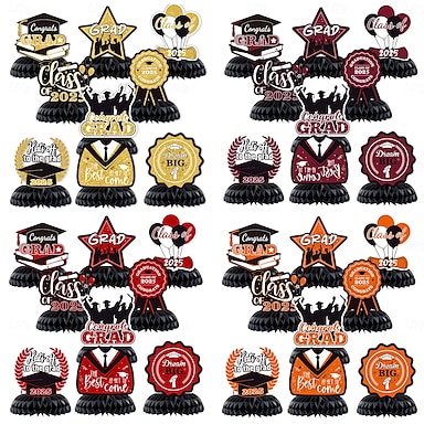 9PCS Examensfest Dekorationer Klass av 2025 Grattis Examensar Table Centerpiece Grattis Examensfest Honungskaka Toppare för Examensfest Material Julklapp